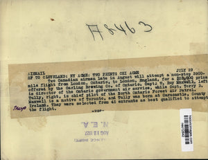 1927 Press Photo Canadian airmen Capt W Roy Mitchell, Capt Terry Tully
