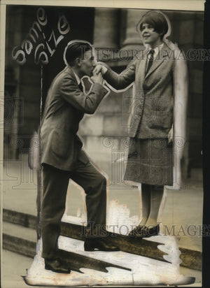 1925 Press Photo Flapper Elizabeth Lacey & Bob Miller Demonstrating Hand Kiss
