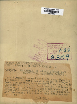 1928 Press Photo Rear Admiral David Foote Sellers of U.S. Navy Central America