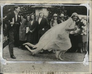 1929 Press Photo Elizabeth Nancy Blushing Bride & Groom W M Mount in Berke, Eng.