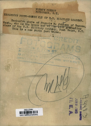 1923 Press Photo Francis R. Johnson of Tacoma, WA, Graduating from West Point
