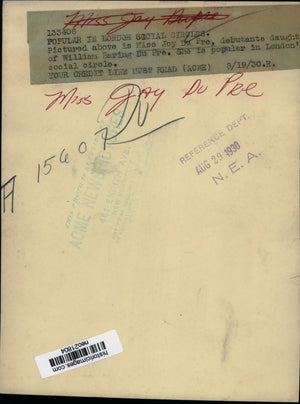 1930 Press Photo Joy Du Pre of London, England - neo21804
