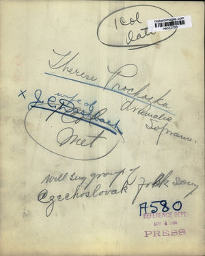1928 Press Photo Theresi Prochazka Soprano - neo22700