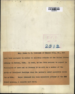 1927 Press Photo Major James CR Schwenck of Kansas City MO in Cuba - neo22870