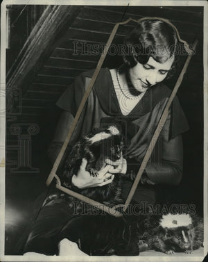 1928 Press Photo Prudence Parsons Holds Skunks, National Pet Show, Chicago