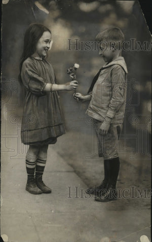 1925 Press Photo Children with Flower Bouquet - neo25543