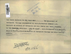 1926 Press Photo Dartmouth president EM Hopkins, Asst Postmaster Gen Bartlett