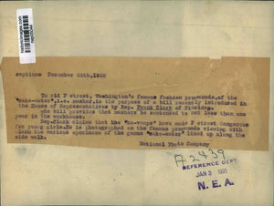 Rep. Frank Clark is photographed on the promenade viewing with alarm the various specimen of the "cake-eater" lined up along the sidewalk.