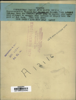 1929 Press Photo Rep. William M. Moran Attempts to Smuggle Liquor into NY Port