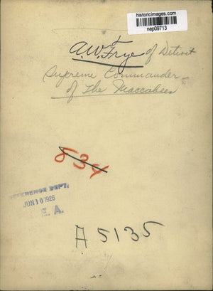 1926 Press Photo A.W. Frye of Detroit, Supreme Commander of Maccabees