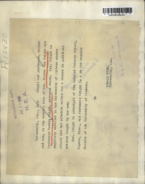 1930 Press Photo Mrs. Wright and son Prof. Baskin Wright of Univ. of Alabama.