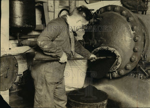 1924 Press Photo Worker Pulls Hydrolized Sawdust from Factory Retort