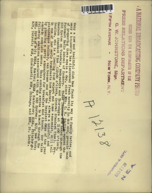 Mrs. Goudiss, who is a leading food expert and home economist, will tell in one of her early broadcasts how Easter, always a colorful and picturesque holiday, can become one of the happiest days of the year by planning a party atmosphere for breakfast and dinner. This morning series is heard through the following stations associated with the NBC System: WJZ, New York; WBZ, Springfield, WBZA, Boston; WHAM, Rochester; KDKA, Pittsburgh; WJR, Detroit; WLW, Cincinnati; WGN, Chicago, and KWK, St. Louis.