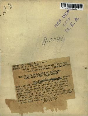 1923 Press Photo Mrs Florence Leeds aboard the SS Majestic
