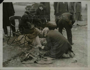 1927 Press Photo Young enthusiast having their skates fixed at Hampstead Heath