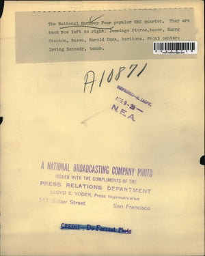 1928 Press Photo National Harmony Houron NBC J Pierce, H Stanton, H Dana,Kennedy