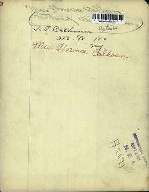 Mrs. Florence Calhoun (318 W. 100 New York), mother of actress Alice Calhoun
