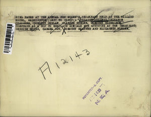Suzanne Mullett, Eleanor Chambers, Dorothy Dunlap, Clarice Burger, Dorothy Nicholson, Bernice Green, Carmel Hoy, Dorothy Shaffer & Elizabeth Hohoff at the Annual Pen Women's Breakfast held at the Willard Hotel, Washington.