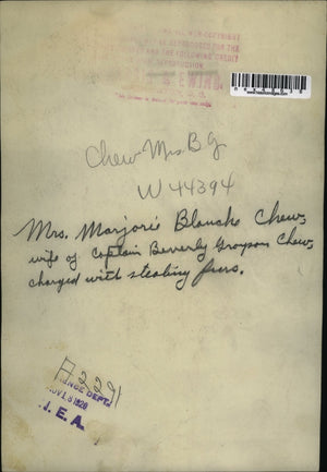 1920 Press Photo Mrs Marjorie Blanche Chew charged with stealing furs