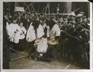 1928 Press Photo A choirboy bumped on head on boundry stones in rite