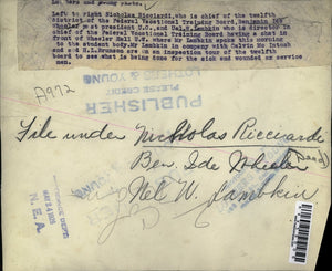 1926 Press Photo Nicholas Ricciardi Vocation Training, Ben Ide & U Lambkin