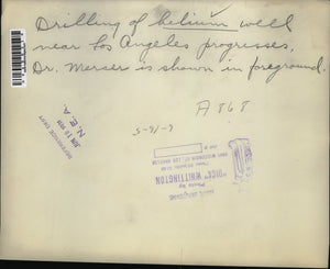 Drilling of Helium Well near Los Angeles. Mrs. Mercer is shown