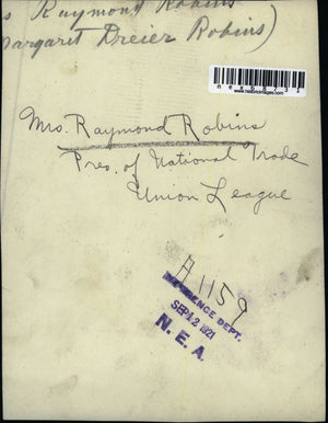 1921 Press Photo Mrs Raymond Robins Pres Natl Trade Union League
