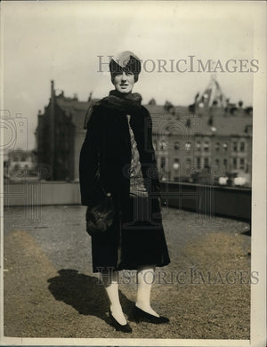 1926 Press Photo Eleanor Holton in Black Velvet Suit Embroidered Blouse Boston