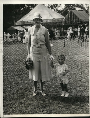 1930 Press Photo Mrs James Lowell & son James at a garden party in N Y