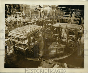 1927 Press Photo Body assembly line at a plant as wood & steel assemblled