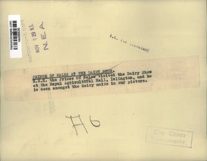 1929 Press Photo HRH the Prince of Wales Visits Dairy Show Royal Agricultural Ha