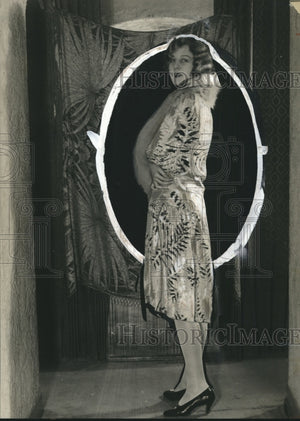 1927 Press Photo Yellow Fox Collar and Gold and Black Brocade Dress