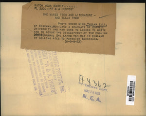 1923 Press Photo Thelma Lull Graduate of Cornell University in London to Write