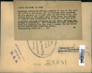 1925 Press Photo Countess Sohonborn Frasso of Oldest Italian Gamilios