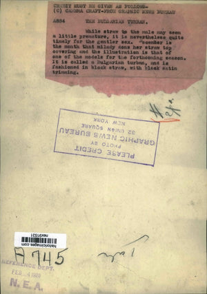 1920 Press Photo Bulgarian Turban in Black Straw & Satin Trimming