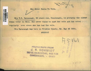 1924 Press Photo Mrs WB Kavanaugh Age 90 Oldest Woman Voter in Ohio