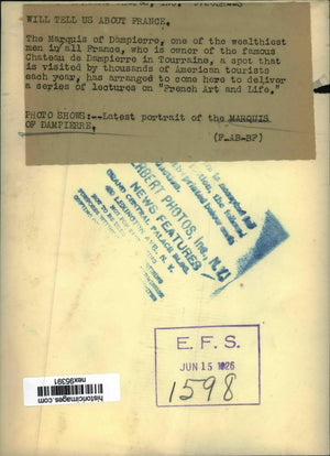 1926 Press Photo Marquis of Dampierre One of Wealthiest Men in All of France