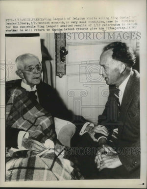 1950 Press Photo King Leopold of Belgium Visit Ailing King Gustaf of Sweden