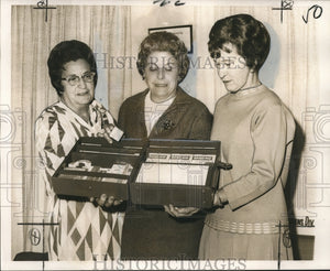 1970 Press Photo Council Confab co-chairmen & session speaker inspect first aid