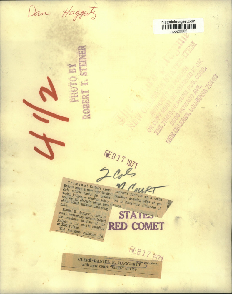 Clerk Daniel B. Haggerty with new court "bingo" device. Criminal District Court judges have a new way to decide which cases go before which judges-random select
