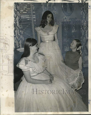 Checking out costumes for A Spring Fiesta, Alyce Lee Jefferson gives Dianne Graf help with a hemline as her sister, Paula Jefferson waits her turn.