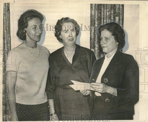 Mrs. George J. Mayer center, new president of the Sara Mayo Hospital board of directors, chats with Mrs. Gervais Favrot, right, president-elect, and Mrs. Edward C. Norman, vice-president. following their election at the hospital yesterday. Mrs. Mayer succeeds Mrs. J. Stuart Ellis, who will continue as a member of the board.