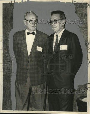 Principal speakers at the Second Annual National Conference for Traffic Court Administrators and Clerks at the Roosevelt Hotel today included Theodore Loveless, left, administrator of the Phoenix, Arizona, Traffic Court, and John H. Petersen, clerk of Municipal Court of San Diego, California. Traffic