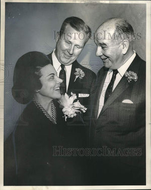Guest speaker at the Members' Council Christmas luncheon of the Chamber of Commerce of the New Orleans Area, newspaper columnist Ann Landers, chats with Joseph A. Childress (center), new council chairman, and William D. O'Regan, outgoing chairman, shortly before she addressed the group. The event took place in the Roosevelt Hotel.