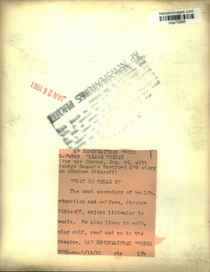 1961 Press Photo Secretary of Health Abraham Ribicoff listens to music