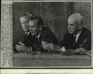 Chris Kraft, Gemini Mission Director, tells a press conference at the Manned Space Center near Houston, Texas, today that the 14-day Gemini 7 space mission may be terminated a day early because of trouble with a fuel cell aboard the spacecraft. Behind Kraft is Lt. General Leighton I. Davis of the Air Force, in charge of astronaut recovery operations, and at right is Dr. Robert B. Gilruth, director of the Manned Space Center.