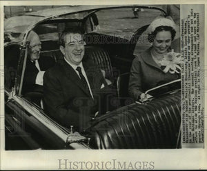 Washington, October 9 - Eisenhower takes a back seat - President Eisenhower sits behind Mexico's president, Adolfo Lopez Mateos, in the rear of the presidential limousine today as they prepare to leave National Airport. The unusual seating arrangement was put into affect to allow the Mexican president room to stand and wave on the parade through town. At right is Mrs. Lopez Mateos.