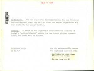 1986 Press Photo In front of Munich Nationaltheater stands, Max Joseph statue.