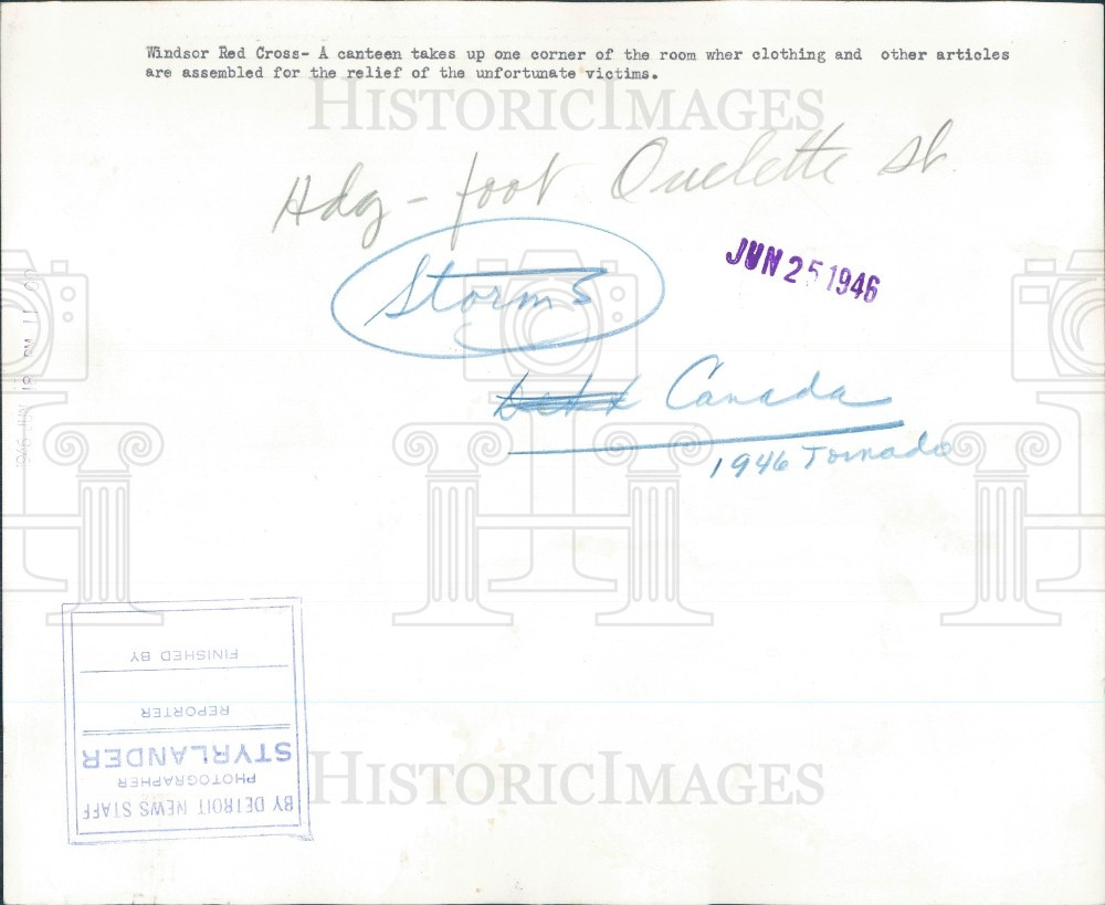 A Red Cross canteen set up to help victims of the tornado in Windsor, Canada. Dated June 18, 1946.