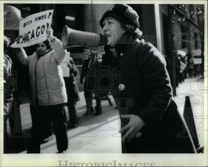 1984 Press Photo Socorro Grajeda leads protest for jobs - RRU98721